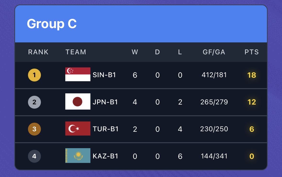 結果としては予選リーググループCを4勝2敗で2位通過。進んだ決勝リーグでは決勝トーナメント初戦敗退のベスト16という結果となりました。